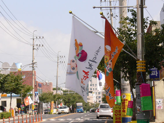 한약축제 홍보를 위해 거리에 내건 홍보기와 관련 개선점이 제기되고 있다.