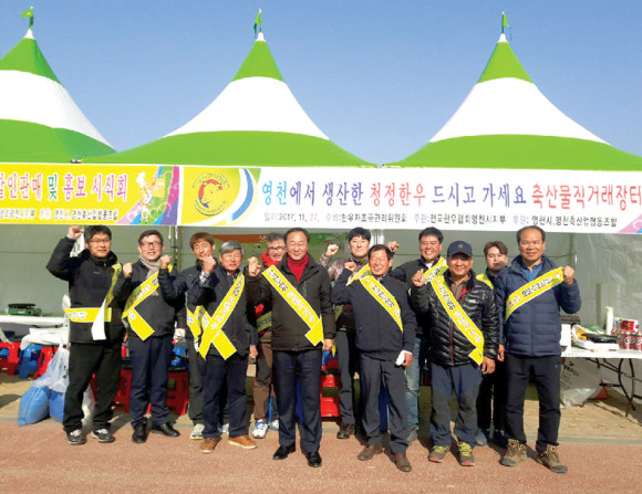 | | | ⓒ 영천시민뉴스 | | 전국한우협회영천시지부(지부장 조규수)는 지난 27일 영천장날을 맞아 영천교 아래 완산동 둔치에서 축산물직거래 장터를 열었다. 한우자조금관리위원회가 주최하고 영천시와 영천축협이 후원한 이날 행사에는 한우소비촉진을 위한 할인판매 및 홍보시식회를 열어 호응을 얻었다.