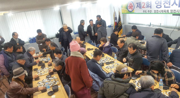| | | ↑↑ 대회 참가자들이 바둑을 두고 있다. | | ⓒ 영천시민뉴스 | | 영천시바둑협회와 영천시체육회 주관으로 열린 이번 대회에서 유시용 영천시바둑협회장은 “여가선용과 정서함양을 위해 매년 바둑대회를 개최하고 있다. 인터넷 바둑에서 벗어나 바둑애호가들이 만남의 장으로 나와, 정이 오가는 지역사회를 만드는데, 바둑동호인들이 앞장서고 바둑 발전을 위해 동호인들의 관심과 참여를 바란다.”고 대회사에서 인사했다.
