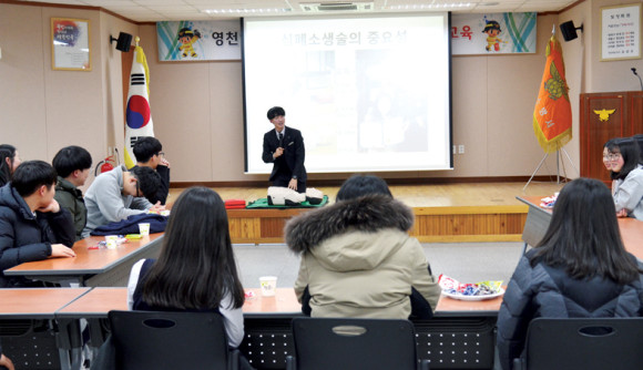 | | | ↑↑ 심폐소생술에 대하여 강의를 하고 있다. | | ⓒ 영천시민뉴스 | |
