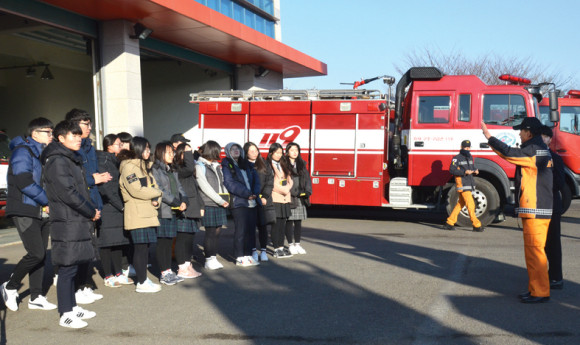 견학에 앞서 이상무 소방서장은 다양한 자료를 활용하면서 약 40분가량 특강을 진행했다.