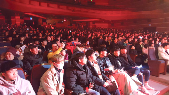 ↑↑ 시민회관을 가득 메운 관객들이 공연을 관람하고 있다.