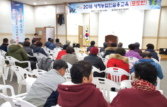 마늘로 유명한 화산면에서 포도교육이 열렸다. 화산면에는 포도 농가가 거의 없다고 생각했으나 이날 교육에는 30명 정도의 포도농가가 참석했다.