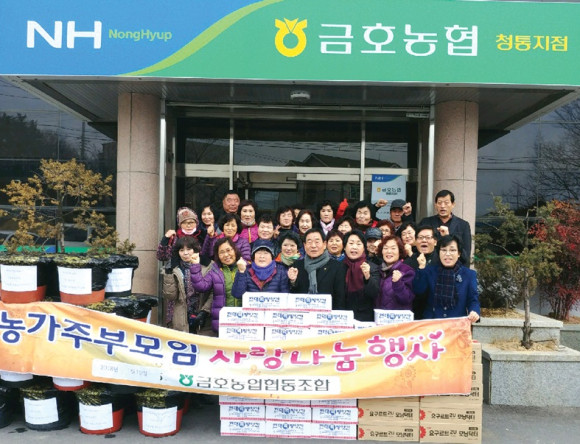 금호농협 청통지점 농가주부모임(회장 이태교)은 2018년도 사랑나눔 행사를 지난 16일 청통지점 사무실 앞에서 가졌다.