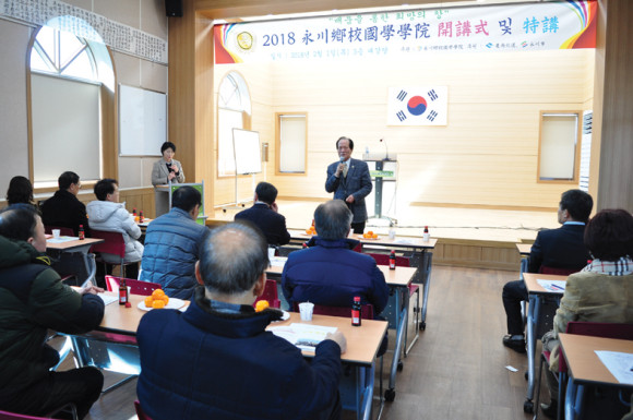 영천향교 국학학원(전교 김달헌)이 지난 1일 2018년 영천향교국학학원 개강식을 개최하고 본격적으로 새해 평생교육 강의에 돌입했다.