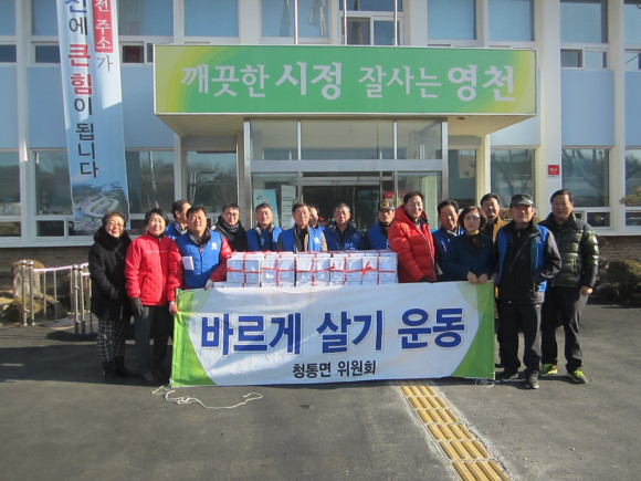 바르게살기청통면위원회(위원장 이정우)는 지난 5일 청통면 22개리 일원의 어려운 이웃 및 경로당에 떡국 떡 60상자를 나누어 주는 나눔행사를 했다.