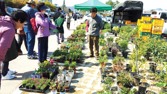 새봄을 맞아 시민들이 꽃을 단장하기 위해 둔치 노점 꽃가게를 들러 꽃을 고르고 있는 모습이다. 시민들은 꽃을 새롭게 심거나 화분 갈이를 위해 꽃을 구경하고 있었다. 또 전원주택 같은 집안팎 가꾸기위해 바로 옆에 위치한 노점 묘목상에서 나무를 구입해 가기도 했다.