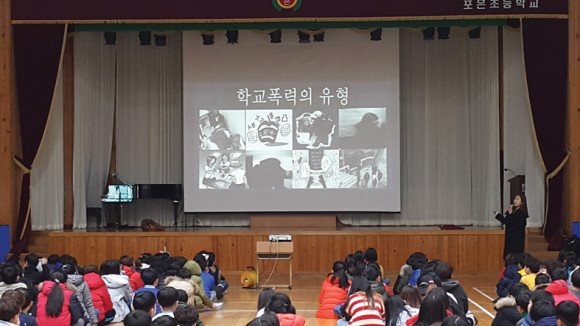 포은초등학교(교장 정기원)는 지난 22일 5, 6학년 학생들을 대상으로 영천시 청소년상담 복지센터 김미선 강사를 초청하여 학교폭력 예방 특강을 가졌다. 이날 김미선 강사는 학생들이 쉽게 이해할 수 있도록 다양한 동영상을 보여주며 학교 폭력의 이해 및 실태, 가해 학생과 피해 학생의 이해, 관련법 및 예방법에 대해 강의했다.