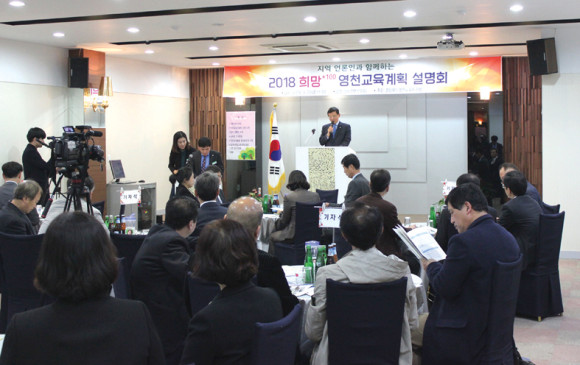 영천교육지원청(교육장 김우영)은 지난 23일 영천스타컨벤션에서 지역 언론인을 초청하여 2018 영천교육 계획 설명회를 개최했다(사진).