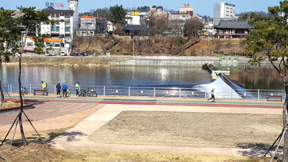 겨우내 꽁꽁 얼어붙은 둔치가 봄을 맞아 사람들이 자주 찾는 공원으로 변하고 있다. 지난 주말 둔치에는 자전거 동호인, 마라토너, 걷기 등을 하며 봄기운을 만끽하는 시민들로 가득했다.