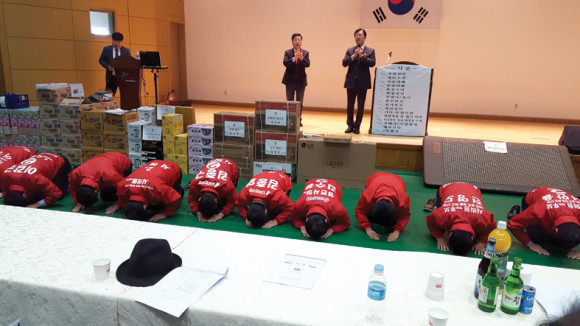 이만희 국회의원은 가락종친회 행사에서 자유한국당 예비후보와 더불어민주당 예비후보들을 모두 불러 단상 앞으로 나오게한 뒤 큰절로 가락종친회(시민들에) 참석자들에 인사를 시켰다.