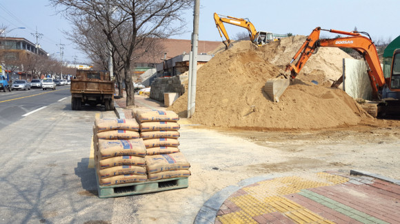 시민운동장 입구 골재점에서 인도위에 골재 자재를 쌓아 두고 있어, 인도위를 지나는 시민들의 불편과 안전은 아랑곳하지 않고 있다. 이곳을 지나려면 시멘트 등을 옮기는 지게차가 왔다 갔다 하는 등 각별한 주의가 필요한 곳이다.