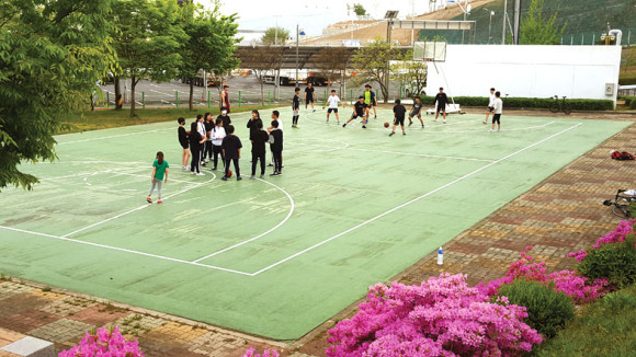 상주에서 열리는 도민체전 고등부 농구 출전 남녀 학생들이 시민운동장 뒤 농구장에서 주말도 아랑곳하지 않고 구슬땀을 흘리고 있다. 오는 27일부터 열리는 도민체전 농구종목 영천선수들의 성적은 하위권이었으나 올해는 상위권 진입을 목표로 열심히 노력하고 있다.