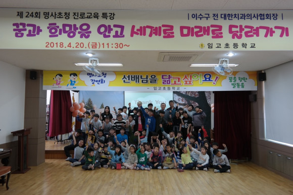 임고초등학교(교장 이강수)는 지난 20일 명사초청 진로특강을 실시해 학생들의 큰 호응을 받았다. 전 대한치과의사협회장을 역임, 현재 건강사회운동본부 이사장인 이수구 선배를 초청해 ‘꿈과 희망을 안고 세계로 미래로 달려가기’ 라는 주제로 진행됐다.
