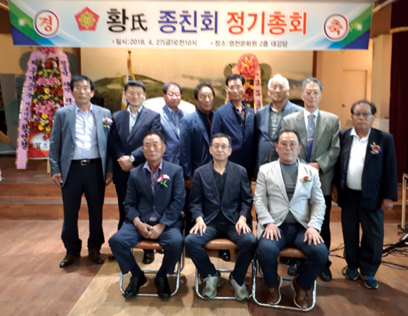 2018년 영천시 황씨종친회(회장 황덕평) 제31차 정기총회 및 한마음 단합대회가 지난 27일 영천문화원 2층 대강당에서 황규만 고문(역대회장), 신임 황중식 회장(대창면) 및 일가 등 100여 명이 참석한 가운데 열렸다.