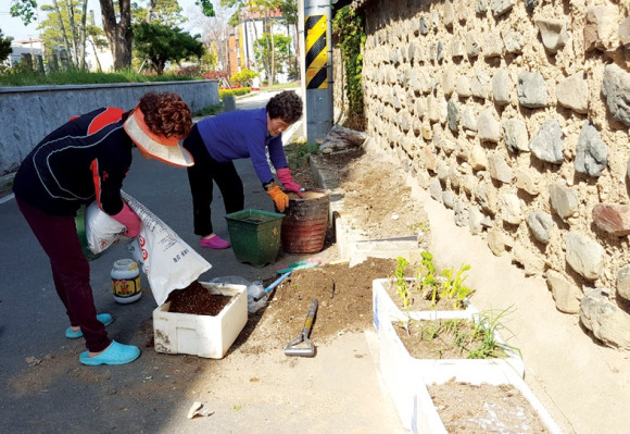 영천문화원 옆 토담길 공간을 활용한 도심내 작은 텃밭가꾸기가 한창이다. 원예용 상토를 뿌리며 고추 파 등 각종 먹을거리를 심는 시민들의 부지런함을 엿볼 수 있는 장면이다.