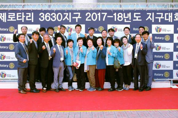 영천중앙로타리클럽(회장 기세록)과 영천의 6개 로타리클럽 회원들은 지난 21일 영주시 국민체육센터에서 열린 국제로타리 3630지구 2017-2018년도 지구대회에 참석하고 영천로타리클럽 회원들의 일치단결 하는 모습을 보였다.