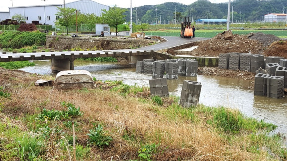 비가 많은 계절이 돌아왔다. 관내 한 공사 현장에 지난 23일 35.5mm 24일 11.0 mm, 내린 비로 인해 공사 자재가 불어난 불에 일부 잠겼다. 많은 비가 아니라 다행이지만 공사 자재를 안전하게 정리하는 대비 정신이 필요하다.