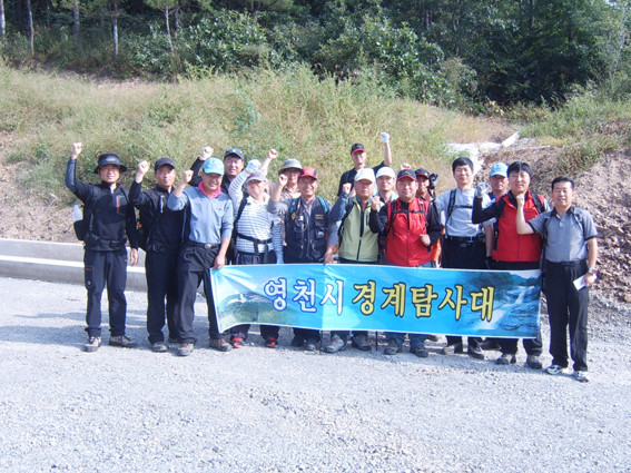 지난 9월 20일 오전 8시 30분, 17명의 대원들이 시청 마당에 집결 버스로 출발지를 향해 떠났다. 9시 20분경 갑령 중간 지점(신녕면 화남리)에 도착했다. 갑령은 6.25 격전지로 유명한 곳이다. 이곳에서 6.25 호국용사들의 용맹을 잠시 생각하고 탐사 길에 올랐다.