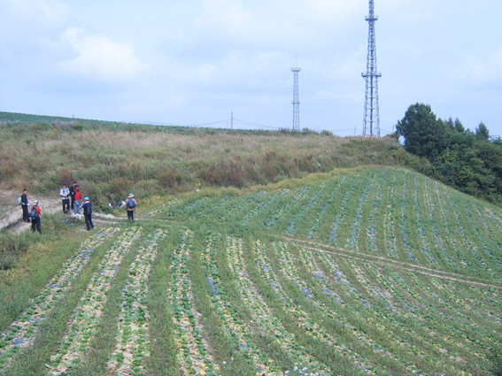 고랭지 채소 첫 재배에 도착했다. 재배지는 신녕면 가천 연정, 화산면 당지리와 군위군 고로면 괴산리까지 연결돼 있다. 여기까지 탐사거리는 3.04km, 탐사시간 1시간 31분, 해발은 674미터. 고랭지 첫 도착지점이 674미터라 본격적인 고랭지 단지는 이 보다 더 높다고 한다. 계속 탐사해 나가니 고랭지 배추 상추 양배추 무 등을 재배하는 고랭지 단지가 넓은 평야처럼 보였다. 이 단지중에서 해발을 측정하니 709미터가 가장 높은 것으로 나타났다.