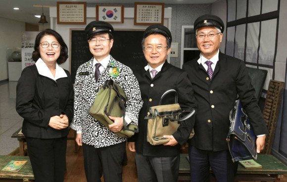 | | | ⓒ 영천시민뉴스 | | 경상북도교육청 2층 현관에 제37회 스승의날 기념 표어 및 체험 수기 공모전, 추억의사진, 편지이벤트 등 작품이 전시되고 있는데, 이중 선생들이 추억의 사진 모델로 등장 70년대 학생으로 돌아간 모습을 카메라에 담긴 작품이 인기를 끌었다.