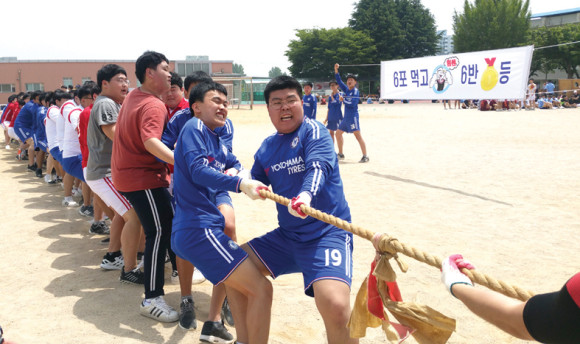 | | | ⓒ 영천시민뉴스 | | 영동고등학교(교장 박영철)는 지난 15일 학교 운동장에서 전교생이 참여한 가운데 춘계체육대회가 성황리에 열렸다. 이날 체육대회에서 특히 모두 한순간의 힘을 발휘하는 줄다리기가 박진감 넘치게 진행됐다.