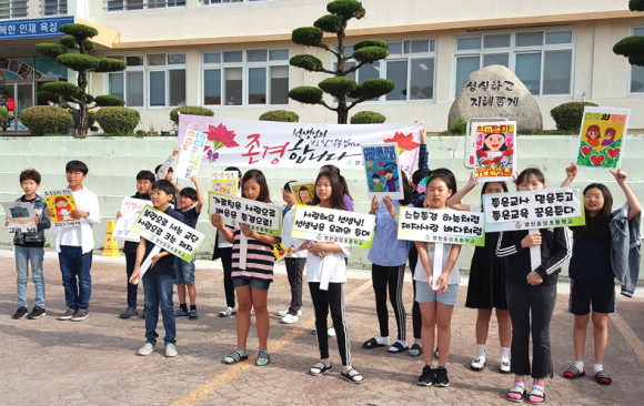 영천중앙초등학교(교장 김미자)는 5월 15일 전교어린이회에서 ‘감·사·존 캠페인’을 실시했다. 아침 등교시간에 학생들이 직접 만든 작품과 피켓을 들고 교문 앞에서 ‘선생님, 감사합니다. 사랑합니다. 존경합니다’를 외쳤다. 전교어린이회는 교권보호 및 스승존경 풍토 확산을 위한 ‘감·사·존’ 캠페인을 수시로 진행하여 선생님에게 에너지를 보내자고 결의하면서 선생님이 행복해야 교실이 행복하다는 말을 가슴에 새겼다.
