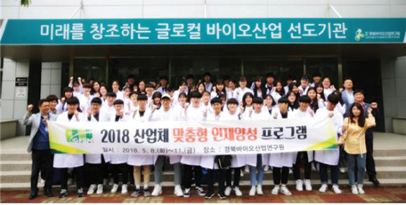 경북식품과학마이스터고등학교(교장 최창원)는 지난 8일부터 4일간 1학년 전교생을 대상으로 (재)경북바이오산업연구원과 연계하여 식품가공기초심화교육을 가졌다. 이번 교육은 현장 실무 맞춤형 교육으로서 기기분석, 미생물 분석 및 GMP 장비 활용 방법을 습득하고, 문제해결능력을 기르는 Capstone-Design 과제를 수행하여 현장에 필요한 창의 융합형 인재를 기르는 데에 목적을 두었다.
