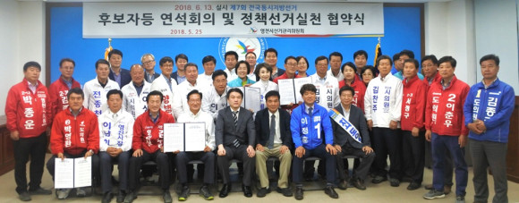 5월31일부터 6·13 지방선거 공식선거운동에 돌입한다. 이번 선거는 도지사, 교육감, 시장, 도의원, 시의원, 도의원 비례대표, 시의원 비례대표 등 7번에 거쳐 투표해야 한다. 영천발전을 책임질 일꾼들이 영천시선관위에 모여 정책선거실천 협약을 했다. 이번 선거를 통해 새롭게 선출된 지역 일꾼들이 영천시의 미래를 새롭게 만들어 가길 기대한다.