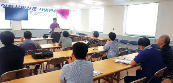 영천시민신문(대표 지송식)은 지난 5월 30일 본사 2층 회의실에서 ‘2018년도 사별연수’를 진행했다. 교육에는 시민신문 직원과 시민기자협의회(회장 최용석) 시민기자 등 20여 명이 참석했다.