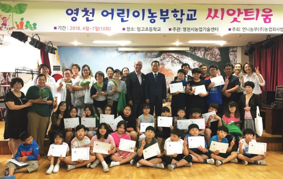 영천시는 농업을 주제로 원예활동 및 힐링프로그램을 통해 어린이 창의력?인성발달, 농업의 이해도 증진을 위한 ‘어린이 농부학교’를 시범운영했으며 지난 3일 임고초등학교에서 어린이 농부학교 수료식과 스쿨팜파티를 개최했다.