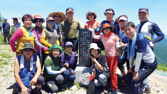 최기문 시장(뒷줄 좌에서 다섯번째)이 지난 14일 영천시경계탐사대(대장 김성근)와 함께 보현산 정상인 시루봉 일대와 천문대를 탐사했다. 최 시장은 보현산 천문대 주차장까지 차로 이동한 후 탐사대와 합류했다.