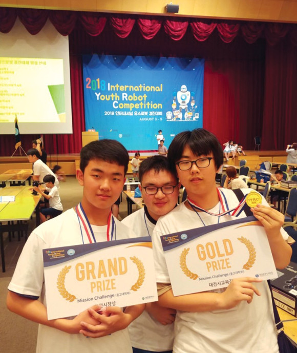 별빛중학교(교장 이원락)는 지난 3일 대전광역시가 주최하고, 대전마케팅공사와 국제청소년로봇연맹이 주관하는 제7회 로봇융합페스티벌 대회에 참가하여 미션챌린지 종목에서 2학년 윤동현 학생이 대상, 3학년 김민찬 학생이 금상을 수상했다(사진).