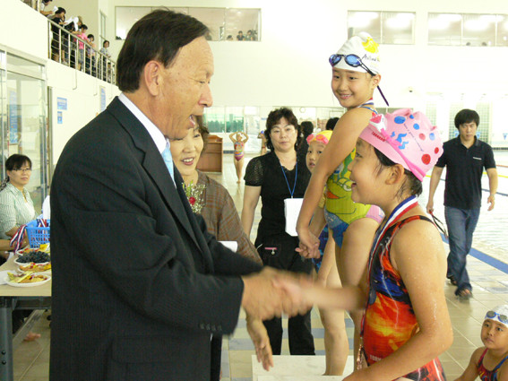 이날 대회는 3~6학년에 재학중인 학교대표선수들의 시범경기를 시작으로 1~2학년 경기인 자유형과 배영종목 25m, 3학년 전 종목 25m, 4~6학년 전 종목 50m 경기가 치러져 각 종목별 경기별로 수상자에 대한 학교장시상이 이뤄졌다.