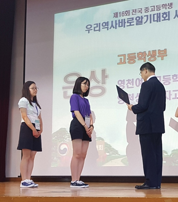영천여자고등학교(교장 이동걸)에 재학 중인 박정인 학생은 지난 16일 교육부가 후원하고 국사편찬위원회가 주관한 제16회 전국 중·고등학생 우리역사바로알기대회에서 고등학생부 은상을 수상했다.