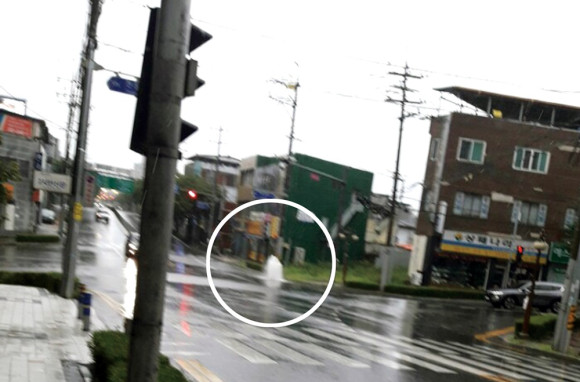 비가 많이 내리자 시내 도로변 하수구가 역류하는 현상이 발생했다. 지난 26일 오후 6시경 중앙사거리 도로변 하수구(맨홀)가 역류하는 현상을 독자가 찍어서 보내왔다. 이곳은 종종 역류하는 현상이 발생한다고 주민들은 말했다.
