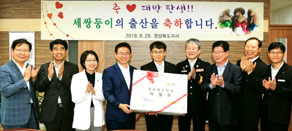 | | | ⓒ 영천시민뉴스 | | 이철우 경상북도지사는 지난 28일 오후 경산소방서 회의실에서 세쌍둥이를 출산, 다둥이 아빠로 경사를 맞은 이기찬 소방관을 찾아 축하 격려하고 애기 육아용품을 전달했다. 다둥이 아빠가 된 이기찬씨는 청도소방서 구조구급과에 근무하고 있으며, 배우자는 이번이 첫 출산으로 지난 24일 오후 대구 동산병원에서 세쌍둥이를 순산했다. 이 지사는 육아의 편리를 위해 이 소방관을 경산소방서로 인사조치했다.