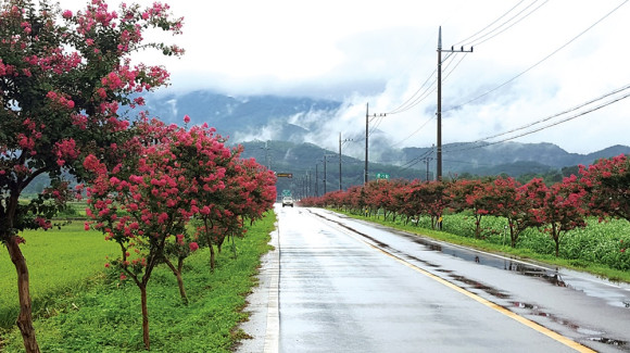 | | | ⓒ 영천시민뉴스 | | 신녕가는길(한들입구)에 도로변 백일홍이 만개해 보기드문 절경을 이루고 있다. 지난 3일 오후 비가 그치자 깨끗한 도로와 팔공산의 가을 구름이 조화를 이뤄 마치 비경을 연출하고 있다.