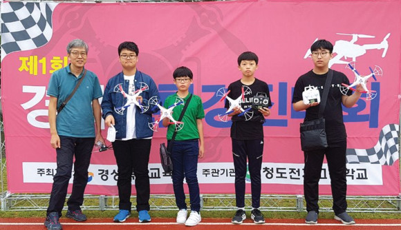 지난 9월 15일 청도전자고등학교에서는 경북의 초·중·고등학교를 대표하는 112팀이 참가하여 드론조립경연부분과 드론레이싱 부분으로 나눠 대회가 열렸다. 드론조립은 드론부품을 조립하여 완성한 후 정해진 코스를 비행하는 기록경기다.