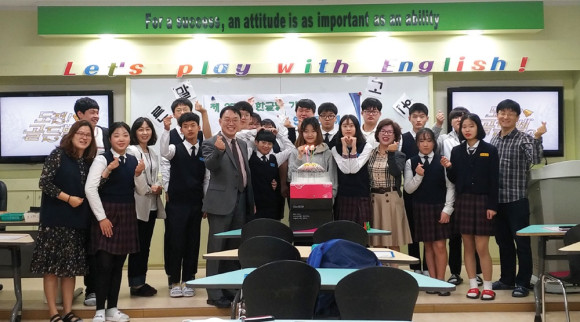 이날 행사에서는 먼저 떡케이크로 제572돌 한글날을 축하하고 퀴즈를 풀면서 올바른 한글사용문화가 정착되도록 하는 유익한 시간을 가졌다. 또 학생들이 ‘한글사랑’이라는 4행시를 짓고 서로 공유하면서 내가 먼저 솔선수범하여 바른말 고운말을 사용하도록 하는 의미있는 시간이 됐다.