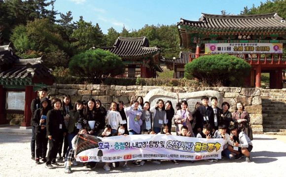 | | | ⓒ 영천시민뉴스 | | 영천교육지원청이 지역의 중학생 70명을 대상으로 호국 충절의 내 고장 탐방 및 영천 사랑 골든벨 대회를 실시했다. 이날 행사에 참가한 학생들은 우리 역사를 바로 배우고, 다양한 고장 문화 체험 기회를 통하여 영천 3선현의 정신을 알기 위해 임고서원, 노계문학관, 최무선과학관을 관람하였으며 영천전투메리얼파크에서는 생생한 시가전체험도 했다.