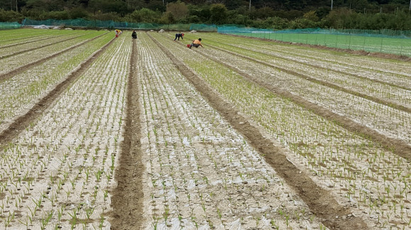 | | | ⓒ 영천시민뉴스 | | 자양면 도일리 일대 농경지가 태풍 콩레이로 인해 침수됐다. 이중 마늘 밭에 피해가 많았는데, 지난 13일 농민들이 나서 마늘밭에 마늘심은 후 침수로 인해 피해를 입은 마늘을 교체하는 작업을 하고 있다.