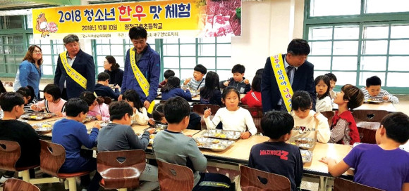 전국한우협회 영천시지부(지부장 최종효)가 청소년에게 한우의 맛을 알리기 위해 ‘한우 맛 체험’ 행사를 열었다. 지난 10월 10일 영동고 870명, 선화여고 401명, 금호초등 270명 등 총 1550명을 대상으로 1인당 100~150g씩 학교급식을 통해 한우불고기를 무료 제공했다.