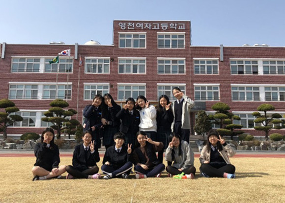 ↑↑ 영천여고 화학동아리가 기념촬영을 하고 있다.