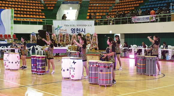 ↑↑ 난타 종목에 참여한 선수들이 공연을 펼치고 있다.