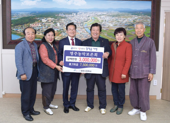 이에 앞서 지난 10월 29일 영천문화원 명주농악보존회는 지난번 제주도에서 열린 제59회 한국민속예술축제에서 받은 시상금 300만원을 (재)영천시장학회에 후진양성을 위해 써달라고 전액 기탁했다.
