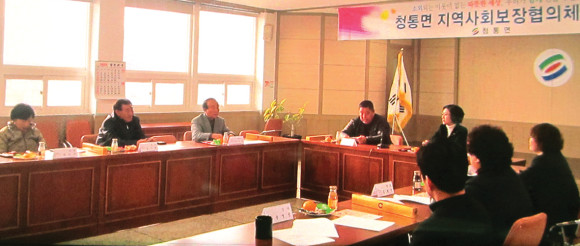 ↑↑ 청통면 지역사회협의체 회의를 하고 있다.