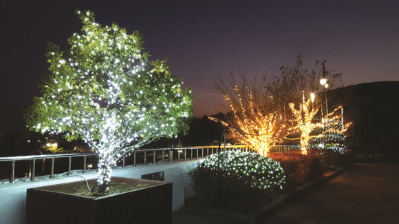영천시종합스포츠센터 입구에 성탄 분위기를 풍기는 크리스마스 트리가 등장해 회원들의 시선을 집중시키고 있다. 나무의 자연미를 최대한 살린 전등 장식은 반짝이는 전등만큼 센스도 반짝반짝 빛나고 있어 주변을 더 아름답게 하고 있다.