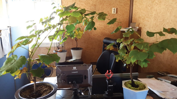 포도나무잎 분재가 공기정화에 뛰어난 효과가 있는 것으로 알려진 가운데 금호읍 이광식씨 농원에서 포도나무 분재가 책상위에 있어 실내 공기를 맑게 하고 있다. 이는 김광진 박사(농촌진흥청 국립원예특작과학원도시농업과)의 공기정화식물 실험결과 포도나무잎의 정화 능력이 뛰어나 천연공기청정기 역할을 하고 있다.