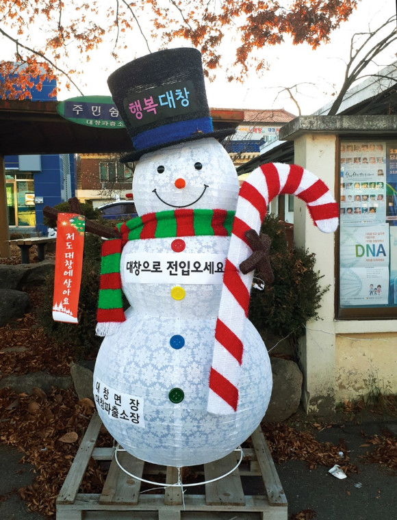 | | | ⓒ 영천시민뉴스 | | 대창사무소는 지난 6일 대창면파출소 앞 도로변에 ‘행복대창 대창으로 전입오세요’라는 문구가 실린 대형 눈사람을 만들어 눈길을 끌고 있다. 이번 눈사람은 2019년을 앞두고 인구늘리기와 함께 연말연시 알차고 행복하게 건강한 대창 만들기로 바라는 마음에서 출발했다.